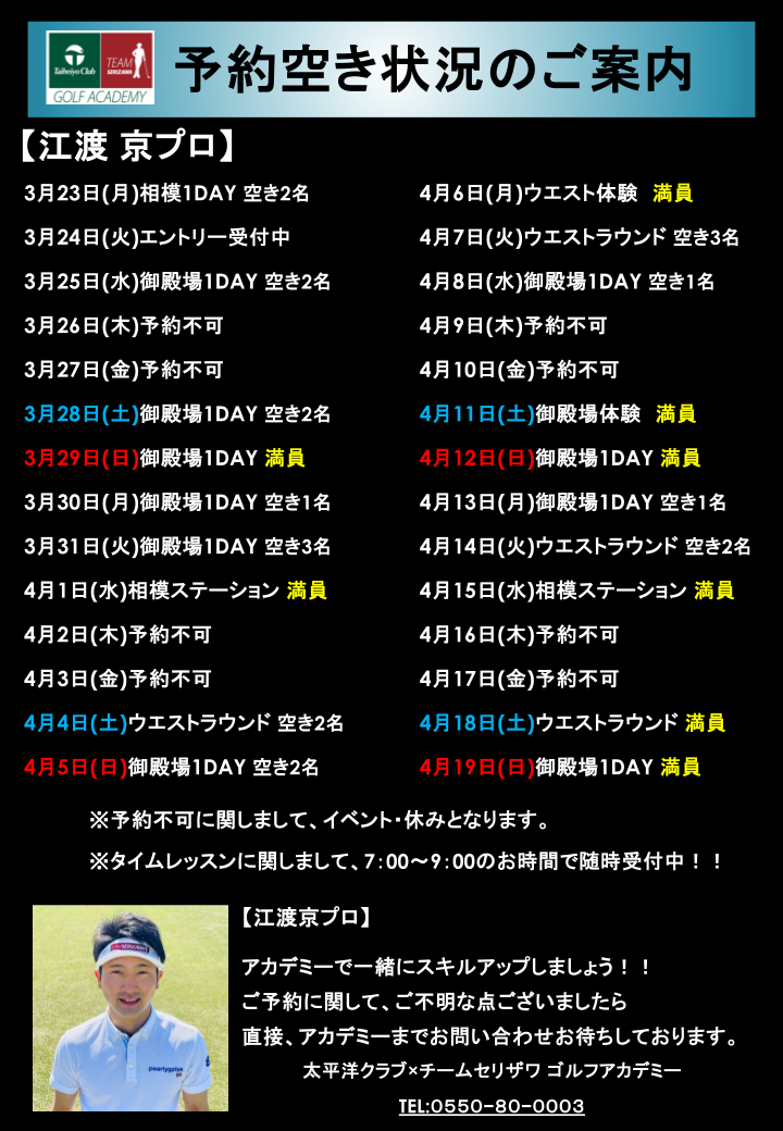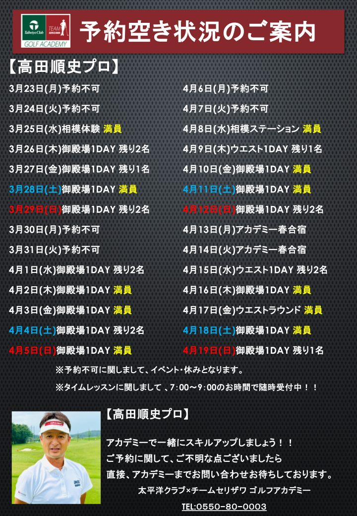 開催日程ご確認いただき、ご予約お待ちしています