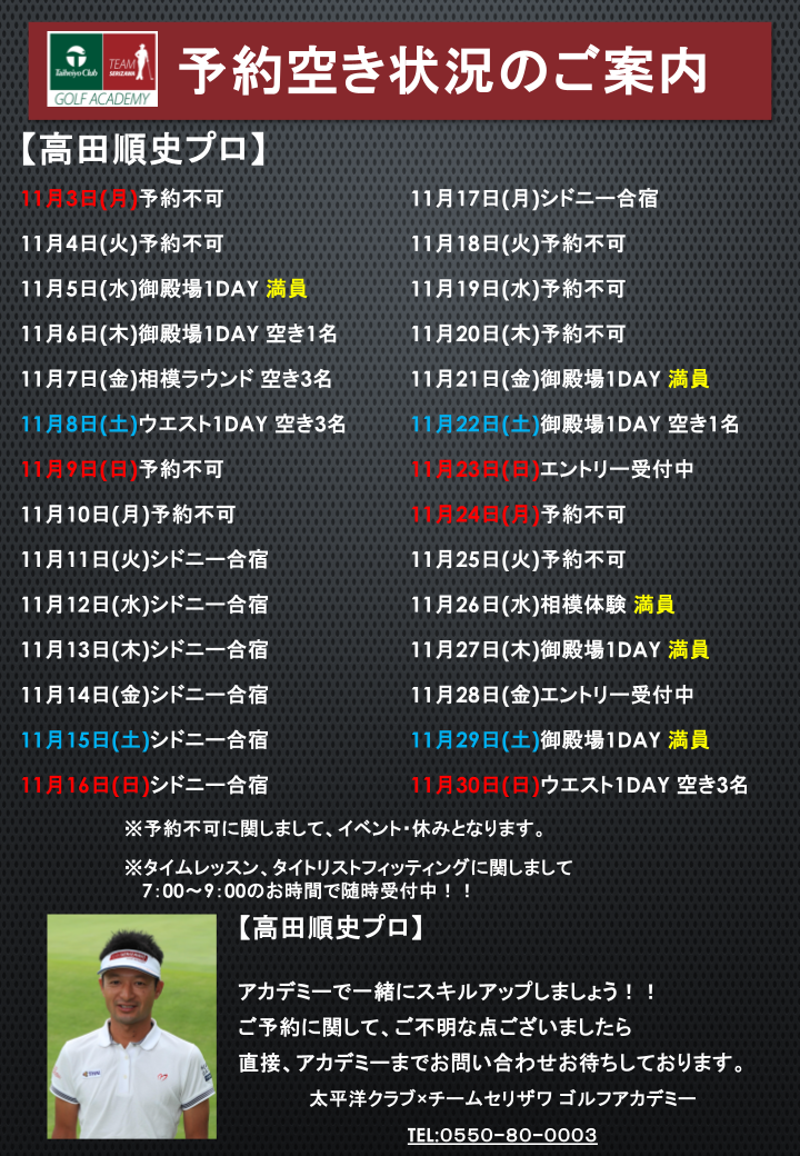 開催日程ご確認いただき、ご予約お待ちしています