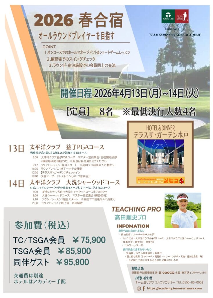 今年も4/13(月)・14(火)の2日間、太平洋クラブ【益子PGAコース】【大洗シャーウッドコース】でのアカデミー春合宿を開催する運びとなりました。