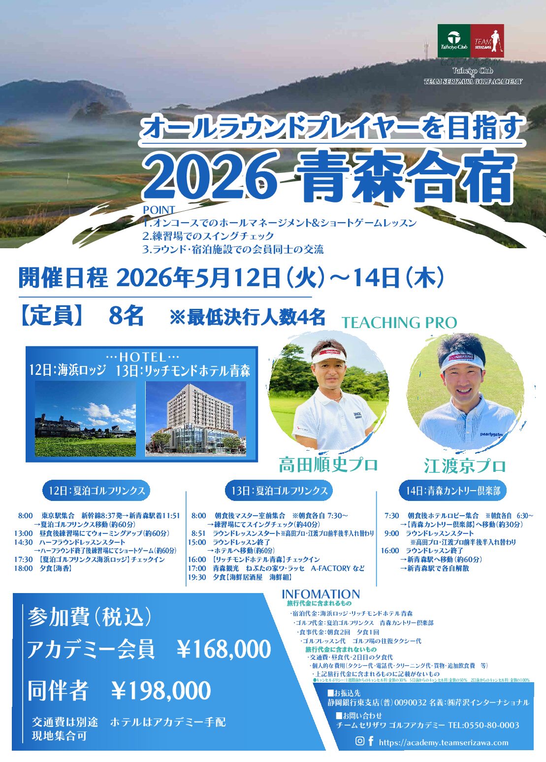2026年5月12日(火)〜14日(木)の3日間、アカデミー青森合宿を開催する運びとなりました。