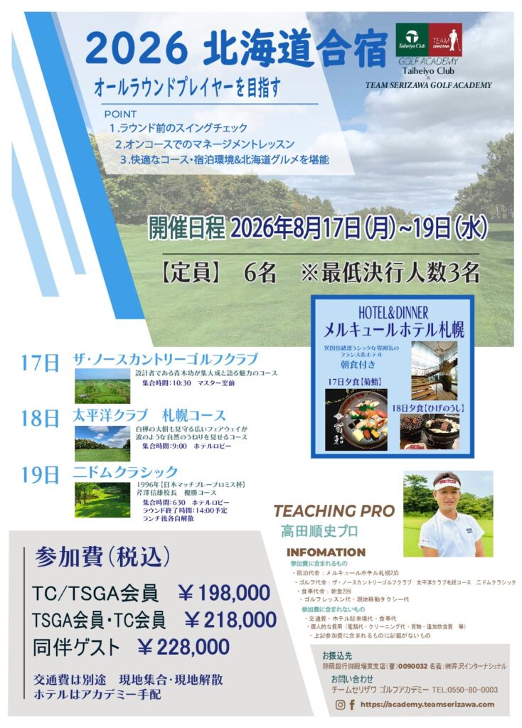 【お問い合わせ】太平洋クラブ×チームセリザワ ゴルフアカデミーTEL:0550-80-0003