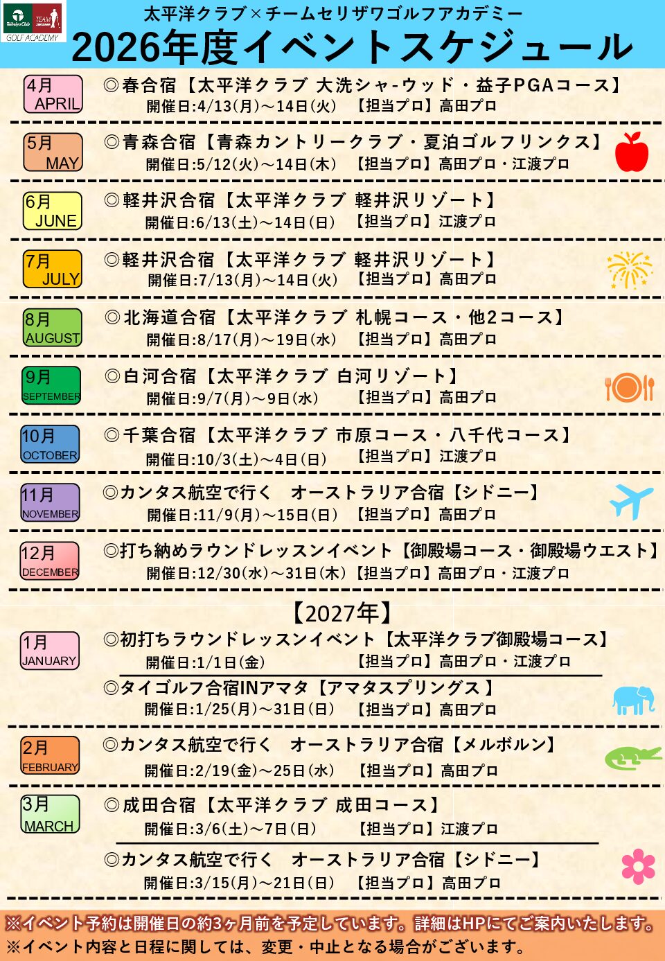 年間スケジュールに一部変更がございましたのでお知らせいたします。