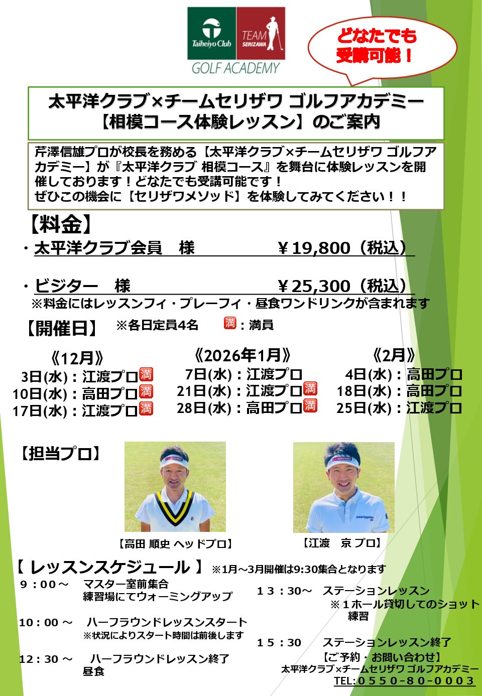 会員の皆さまにおかれましては日頃よりチームセリザワ ゴルフアカデミーを ご愛顧くださり誠にありがとうございます。 この度、弊社チームセリザワ ゴルフアカデミーは10月末をもちまして 大箱根カントリーク […]
