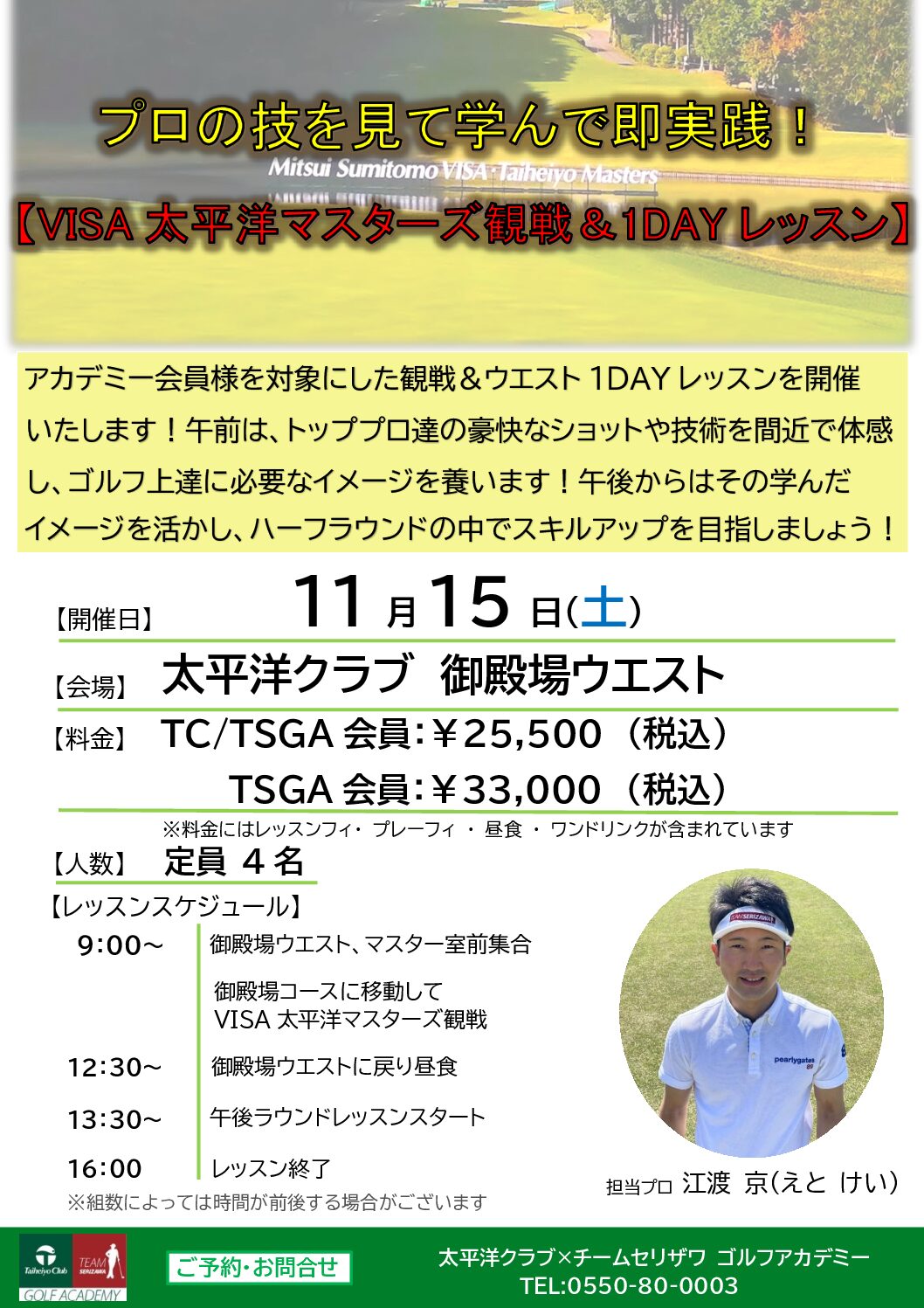 江渡京プロ【御殿場ウエスト VISA太平洋マスターズ観戦イベント】開催‼️