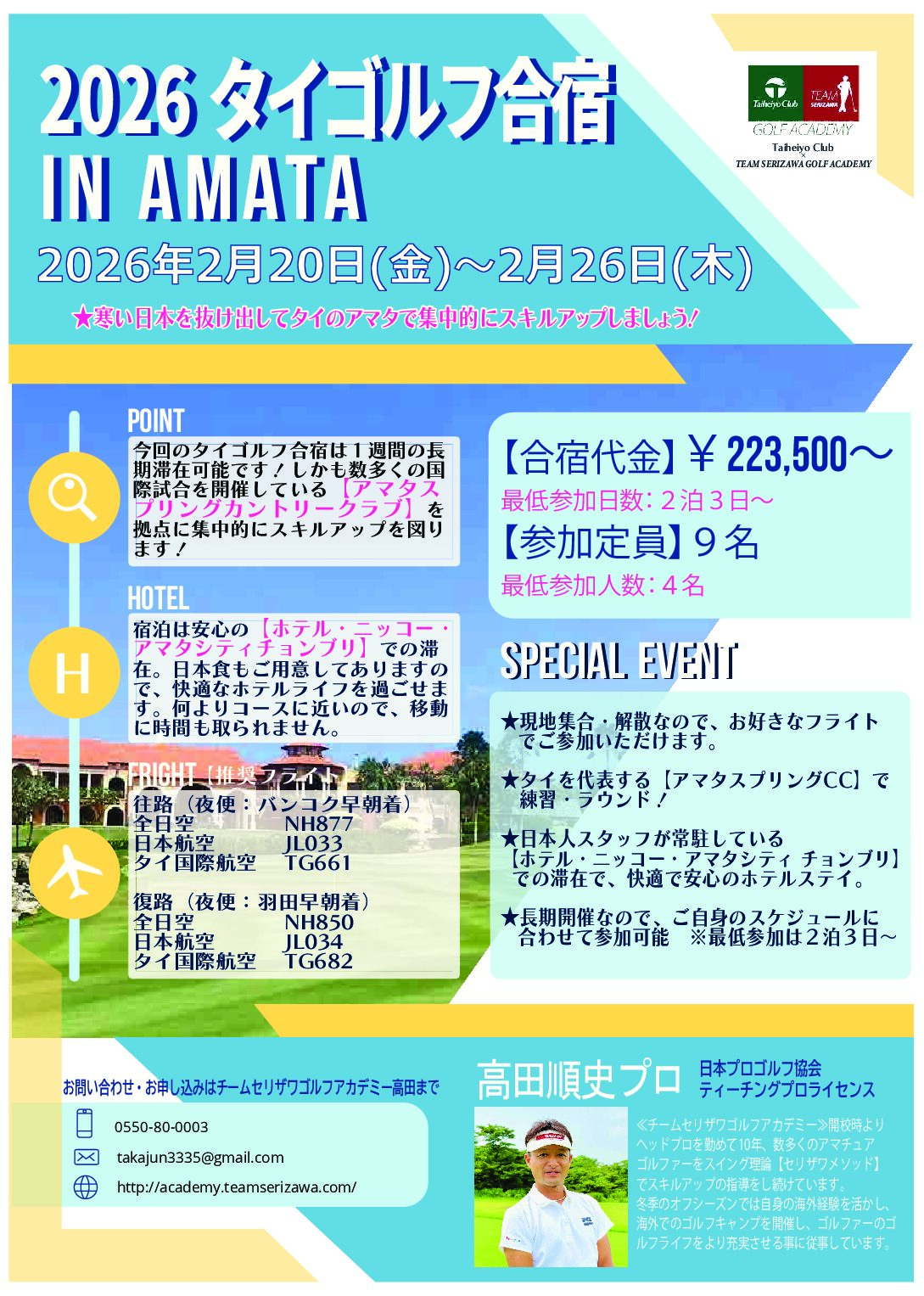 【2026タイゴルフ合宿 IN アマタ】開催のお知らせ