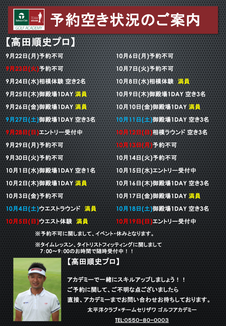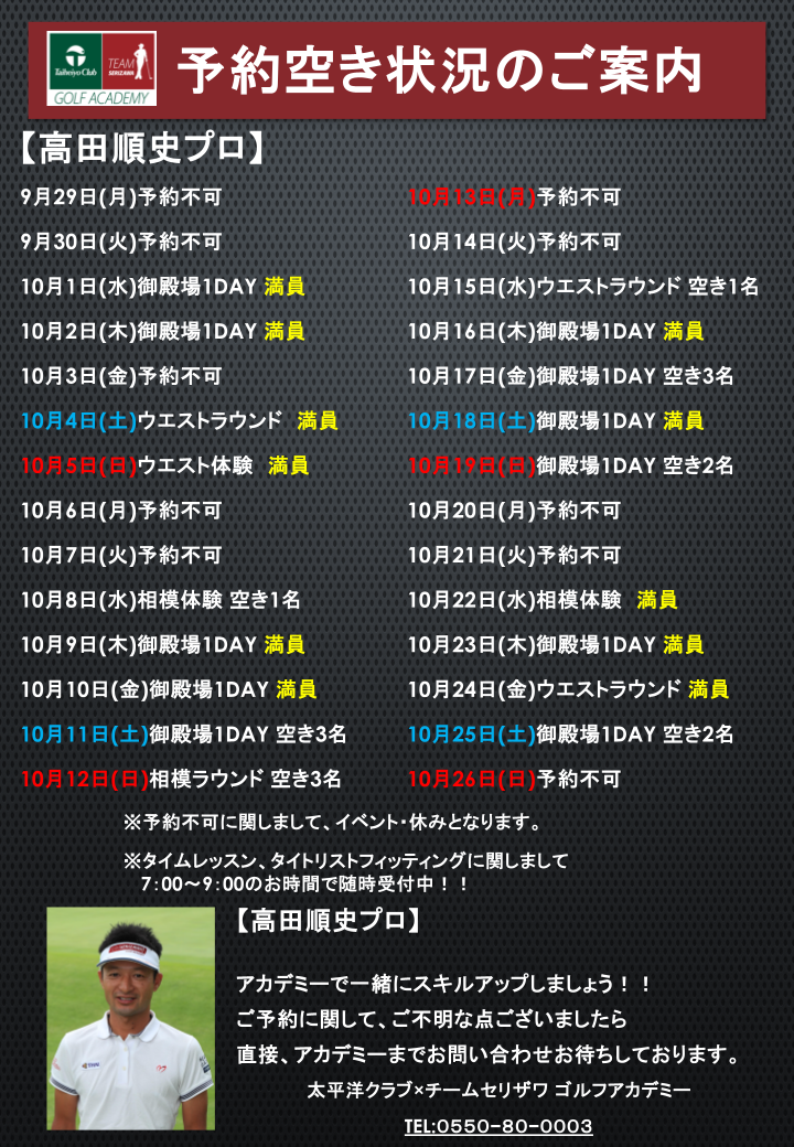高田順史ヘッドプロ レッスン空き状況のご案内